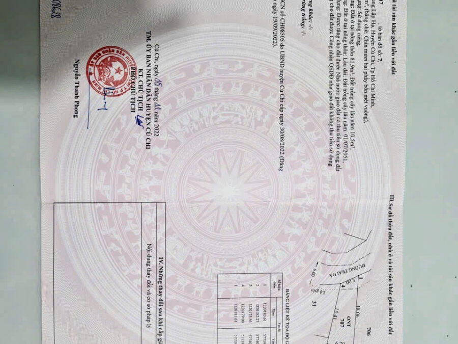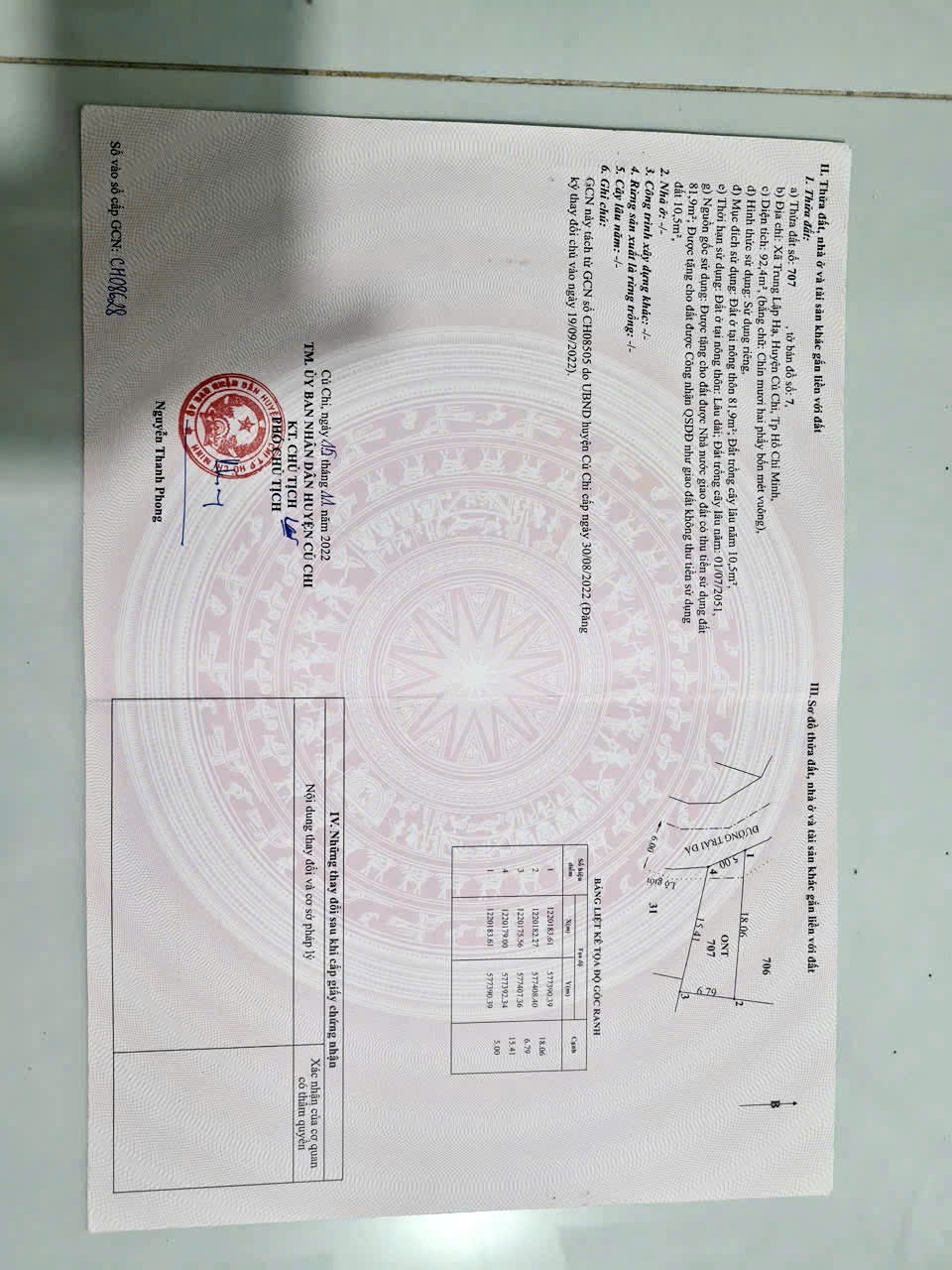 Xã trung lập hạ. Củ chi Đất dân cư hiện hữu. Đường ô tô Dt 5x 18, nở hậu 6,8m full thổ. Đường thông. Dân cư đông kín. Cách trường học , chợ chỉ 2p đi xe máy Giá 1ty3 bớt lộc
